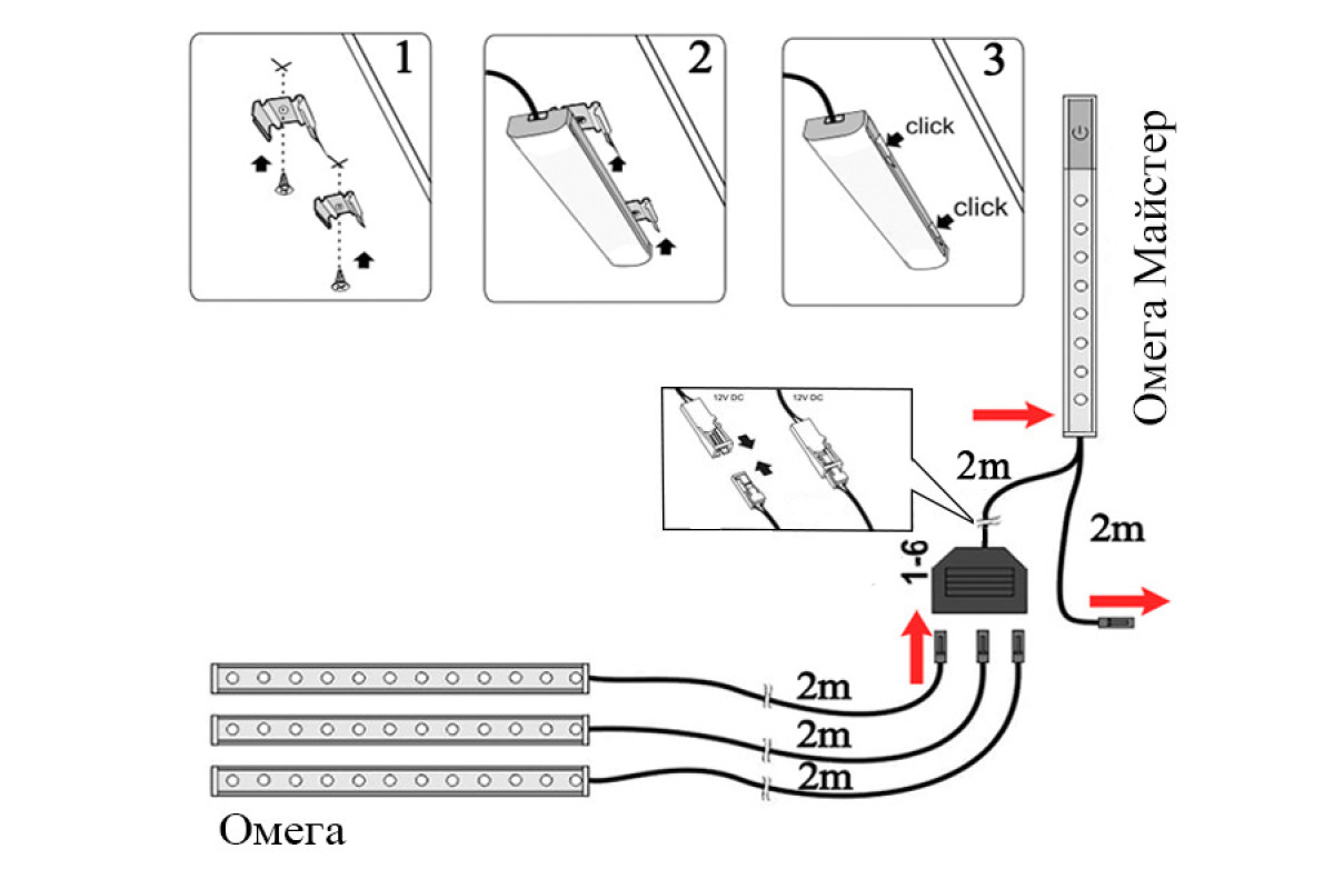 LED furniture surface-mounted lamp Omega 1300mm 12V 4500K (Without switch) LEDUA