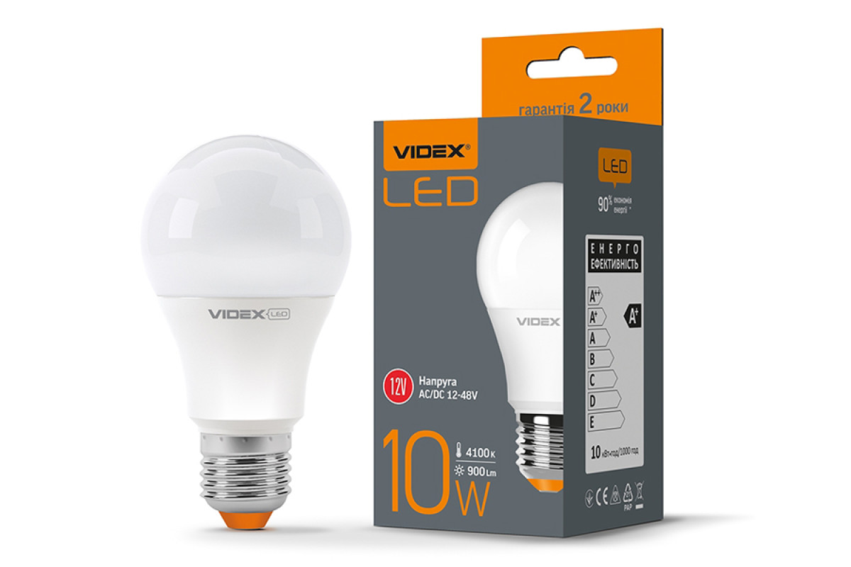 LED lamp A60e 10W E27 4100K 12-48V VIDEX