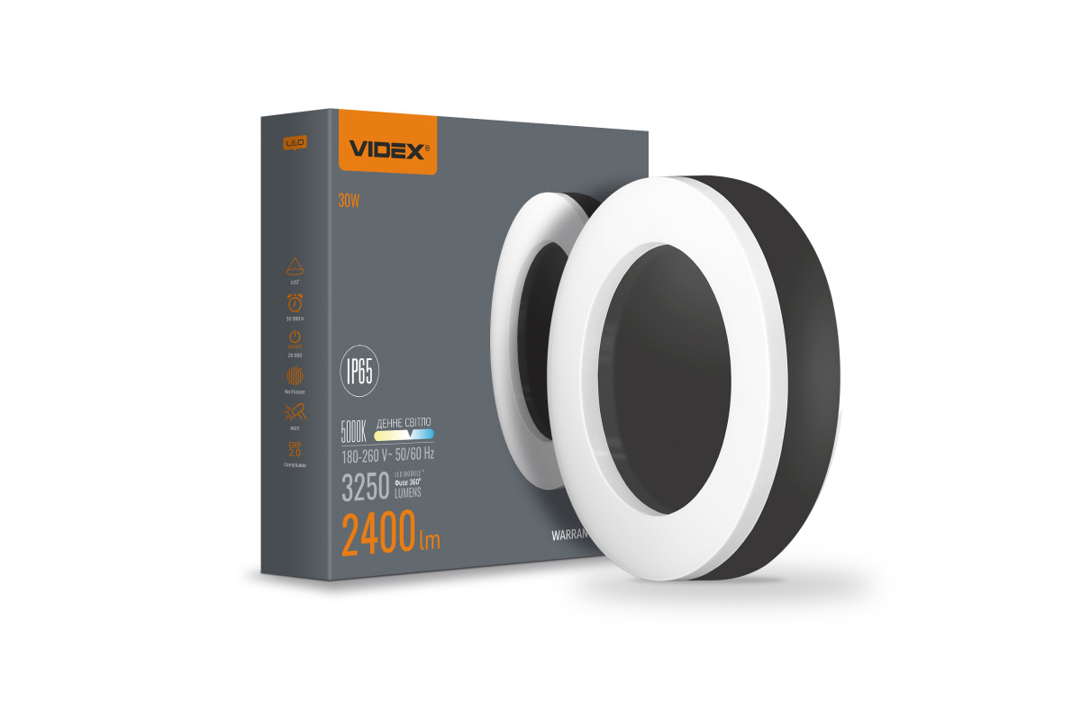 LED lamp ART IP65 round VIDEX 30W 5000K Black VL-BHFR-305B