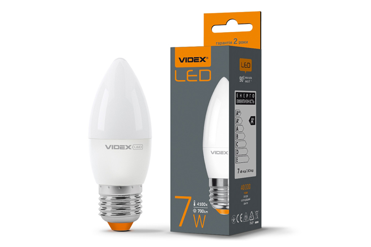 LED lamp C37e 7W E27 4100K 220V VIDEX