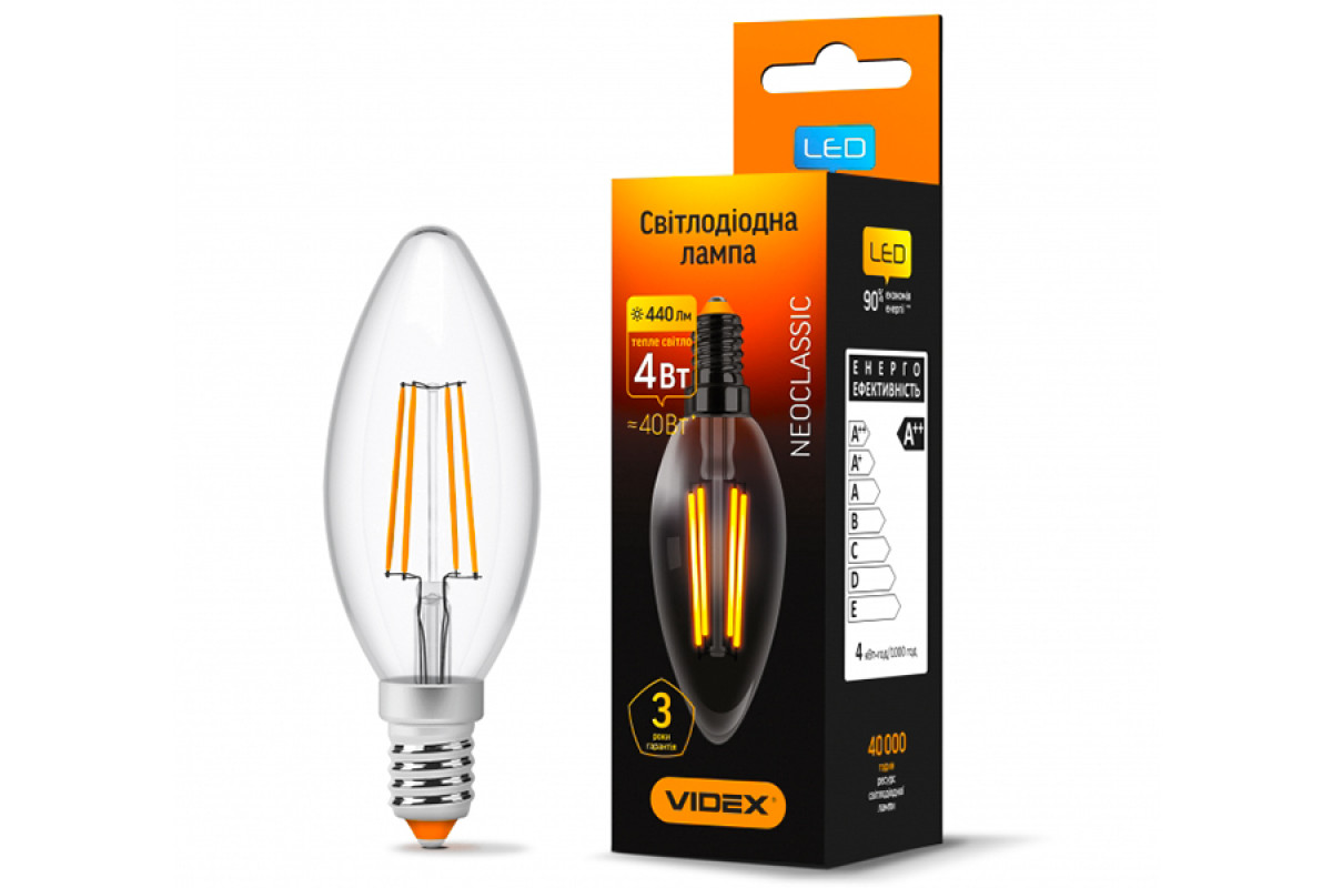 LED lamp C37F 4W E14 3000K 198-242V (VL-C37F-04143) VIDEX