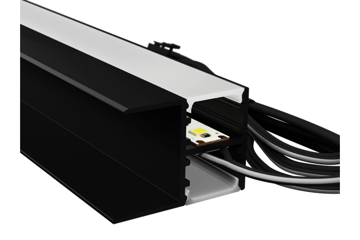 LED lamp for furniture shelves "N38-300" 300mm 12V 3.9W 6000K white light black body black wire 2m LEDUA