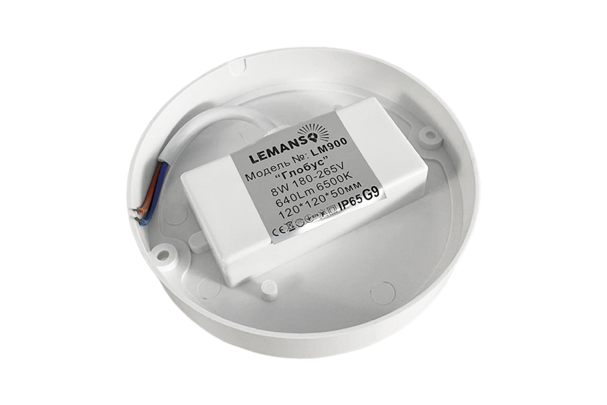 LED lamp for housing and communal services 8W 180-265V 640LM 6500K IP65 "Globe" circle white, microwave sensor / LM32007 Lemanso