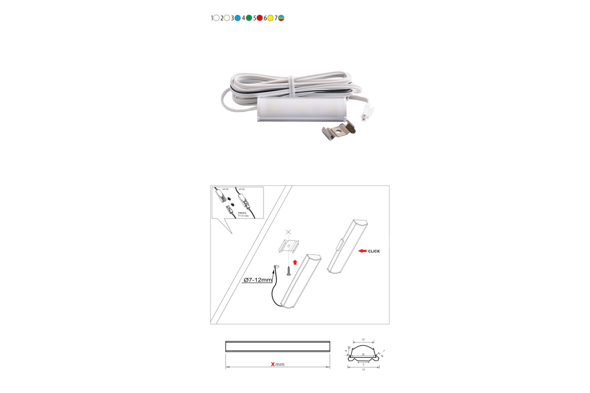 LED lamp for lighting furniture shelves surface-mounted 12V/DC 0.72w neutral light white wire LEDUA