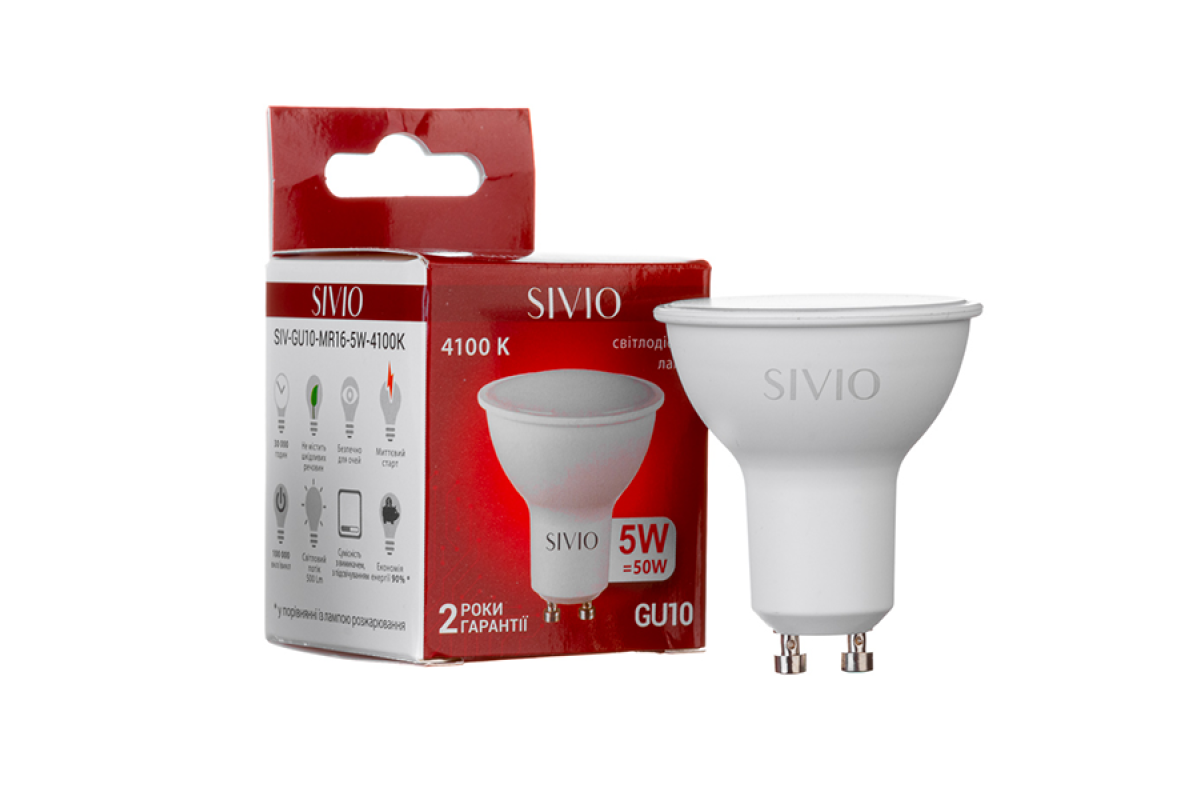 LED lamp GU10-MR16-5W-4100K 175-265V SIVIO