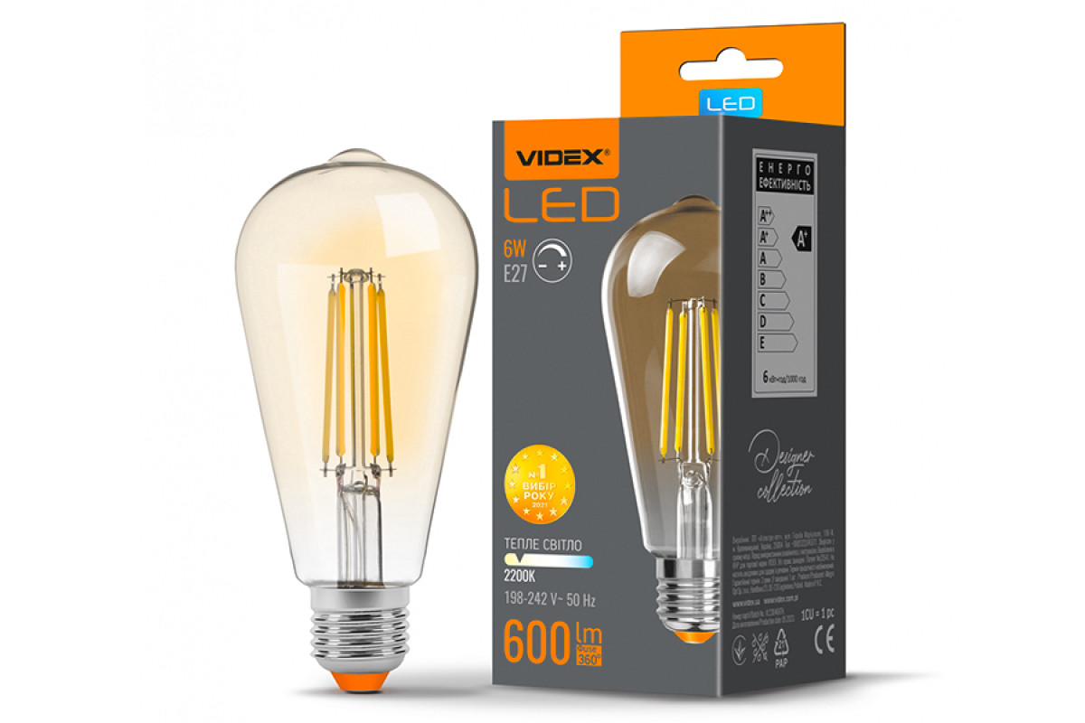 LED lamp ST64FAD 6W E27 2200K 198-242V Bronze Filament (VL-ST64FAD-06272) VIDEX