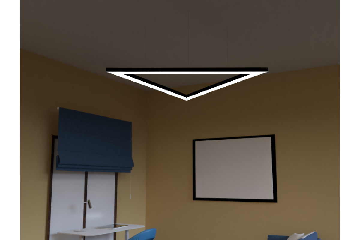 LED lamp suspended, ceiling "Delta-2" triangle 220V 204W 10800Lm 4000k 2000*2000*2000 driver from the outside black body LEDUA