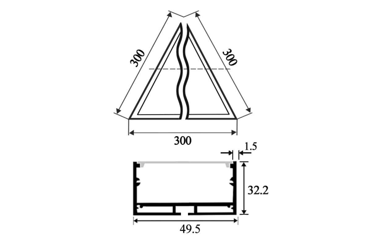 LED lamp suspended, ceiling "Delta" triangle 220V 36W Lm 6000k 300*300*300 black housing LEDUA