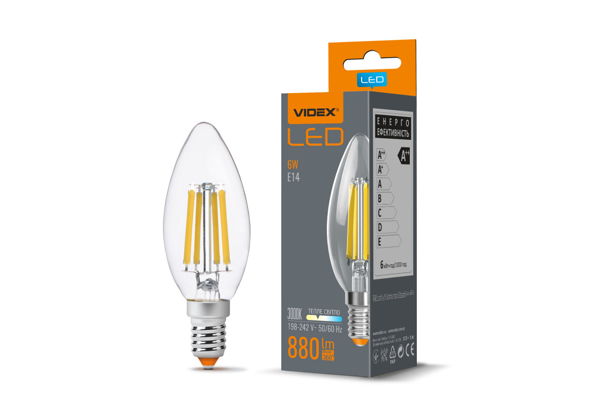 LED lamp VIDEX Filament C37F 6W E14 3000K