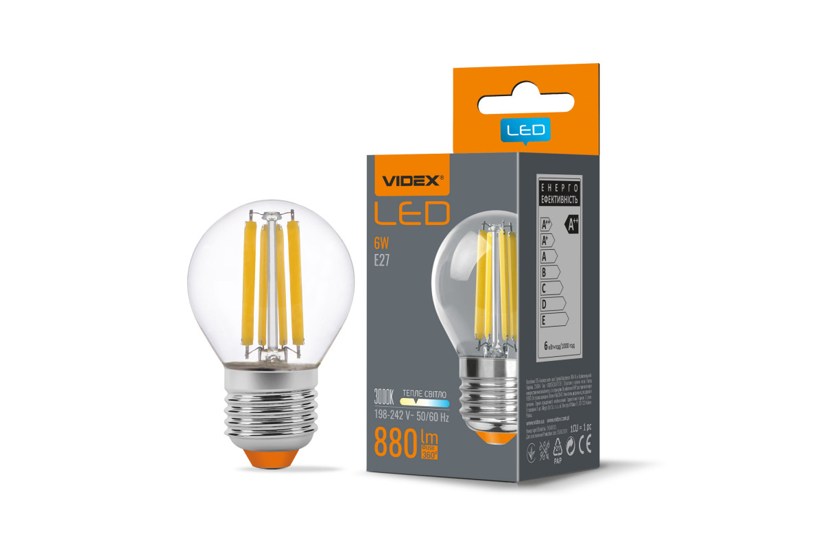 LED lamp VIDEX Filament G45F 6W E27 3000K