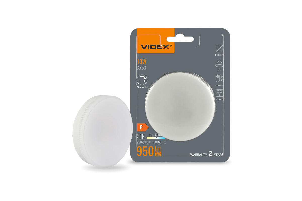 LED lamp VIDEX GX53D 10W 4100K 220V dimmable