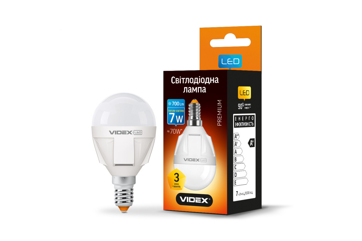 LED lamp VIDEX PREMIUM G45 7W E14 3000K