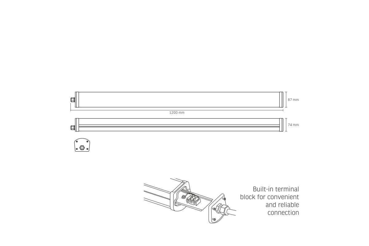 LED lamp with linear lighting VIDEX IP65 48W 1.2M 4000K