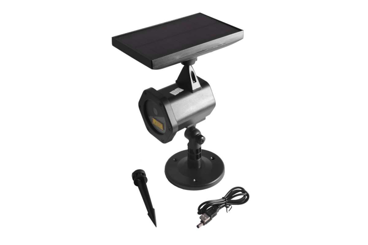 LED laser projector Lemanso 6W IP65 with battery + solar panel + USB cable / LM36012, black Lemanso