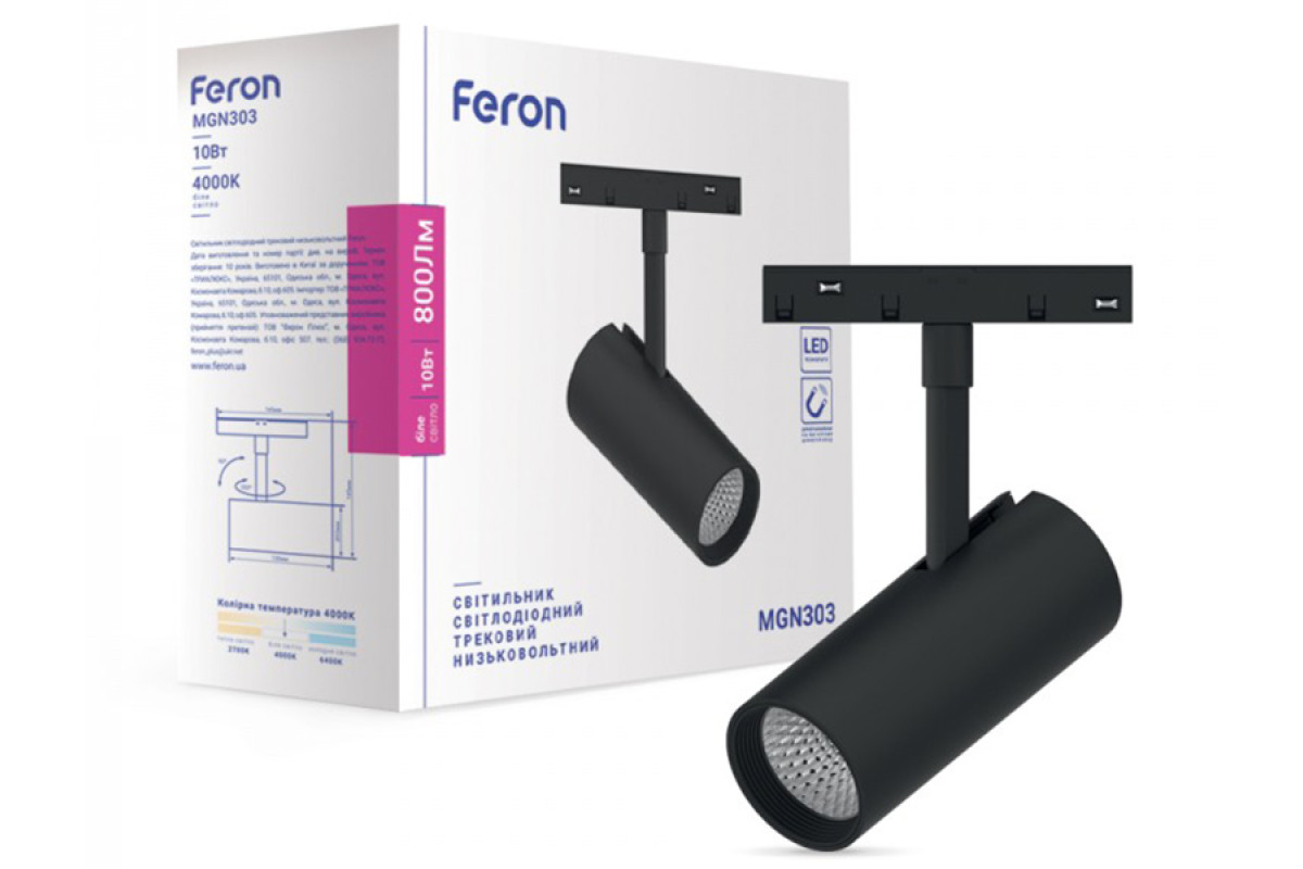 LED magnetic track light 10W 4000K 35° black MGN303 Feron