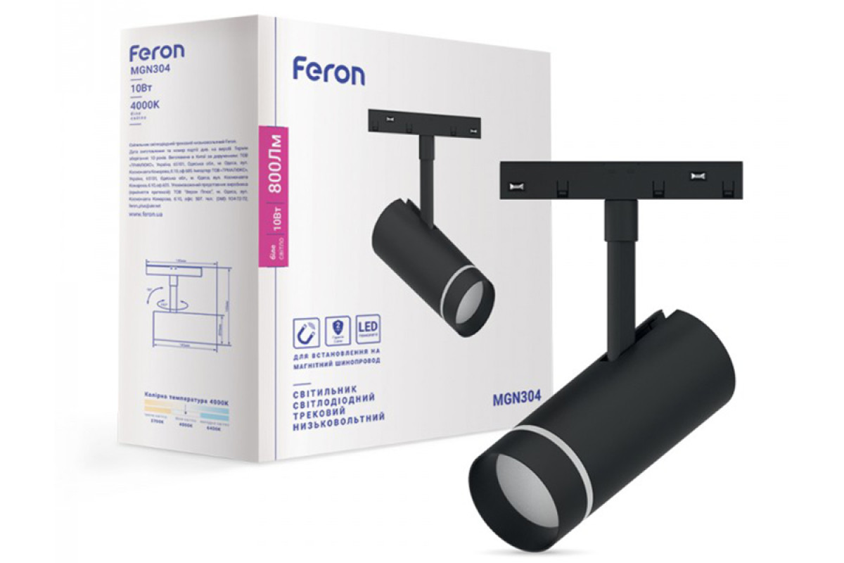 LED magnetic track light 10W 4000K 90° black MGN304 Feron