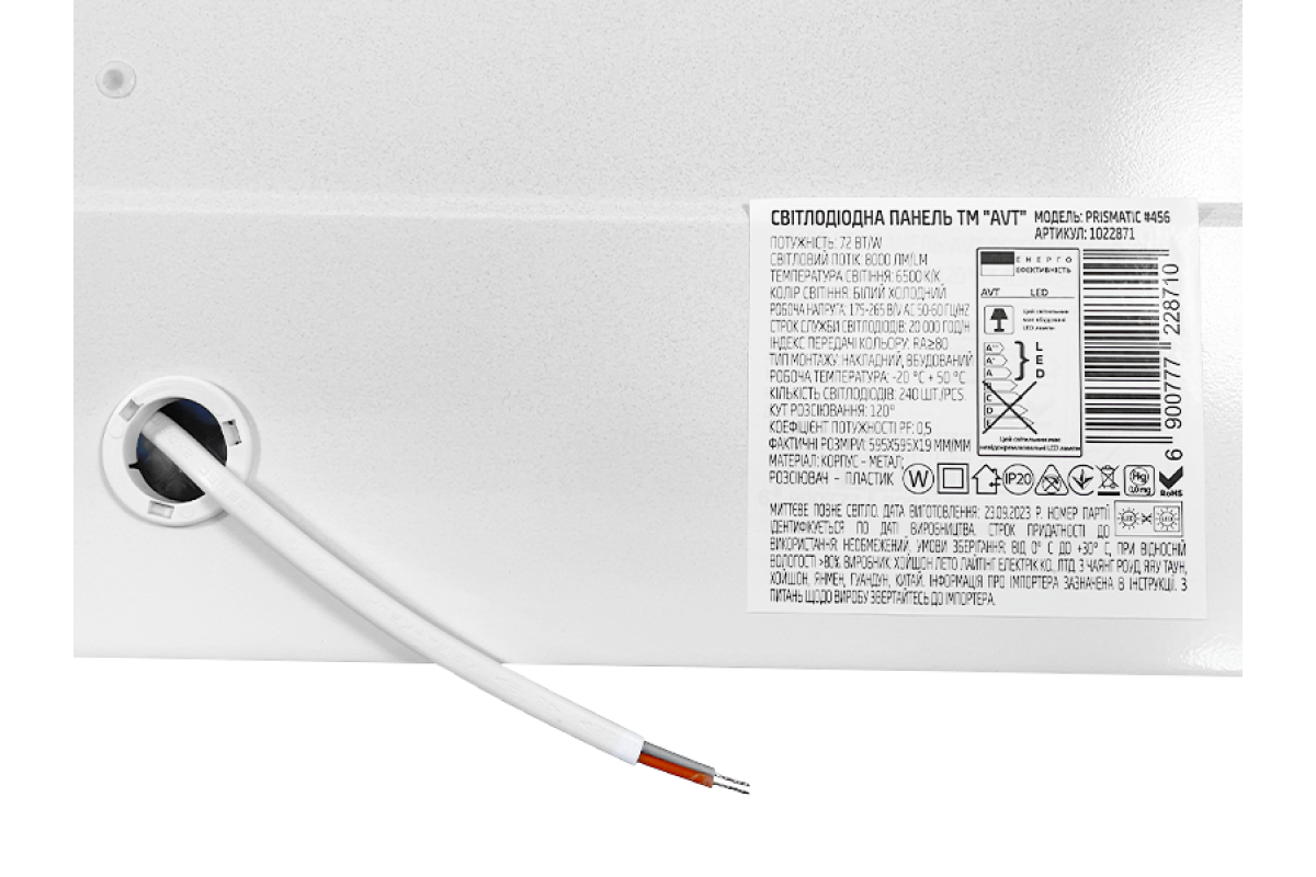 LED panel 600x600 72W 6500K 8000Lm PRISMATIC AVT 456