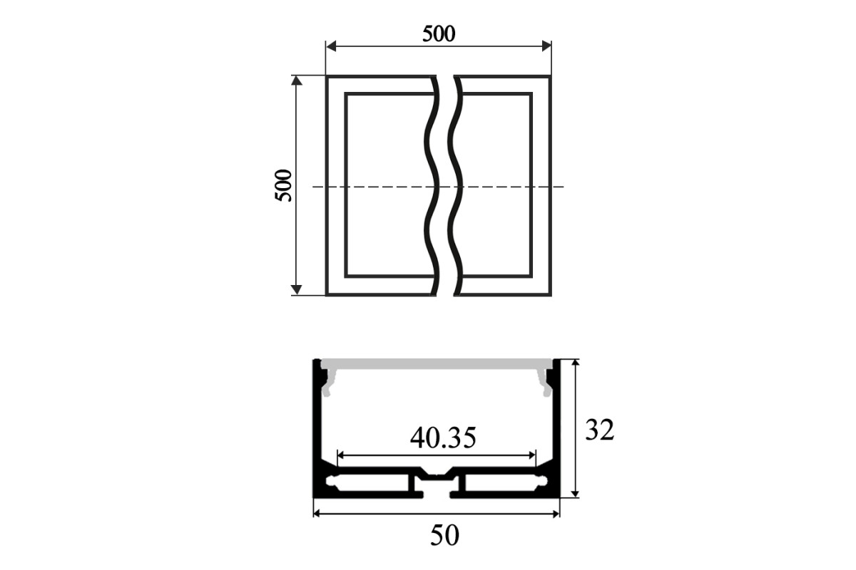 LED pendant lamp, ceiling collapsible "Quadra" square 110-240V 72W 860lm 6000k 500*500, driver from outside LEDUA