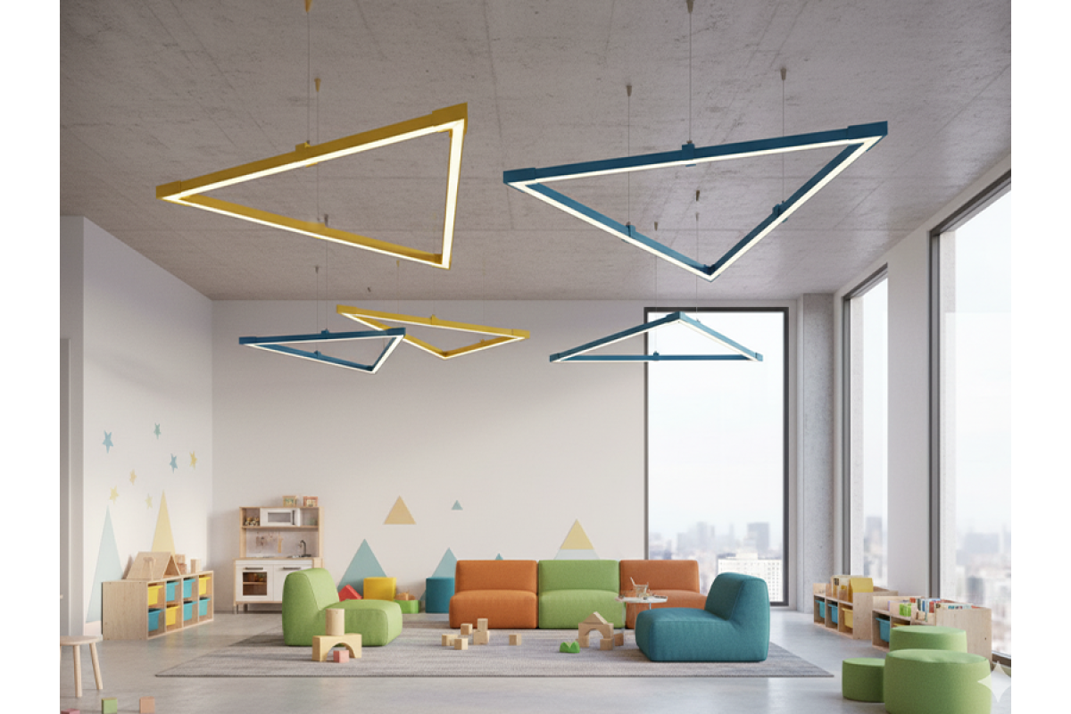 LED pendant lamp, ceiling lamp "Delta 2 mini" triangle 110-240V 48W 4500k 2000*2000*2000 blue body LEDUA