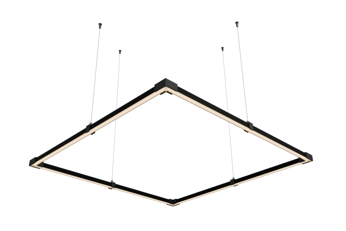 LED pendant lamp, ceiling "Quadra 2 mini" square 110-240V 64W 3500k 2000*2000 black housing LEDUA