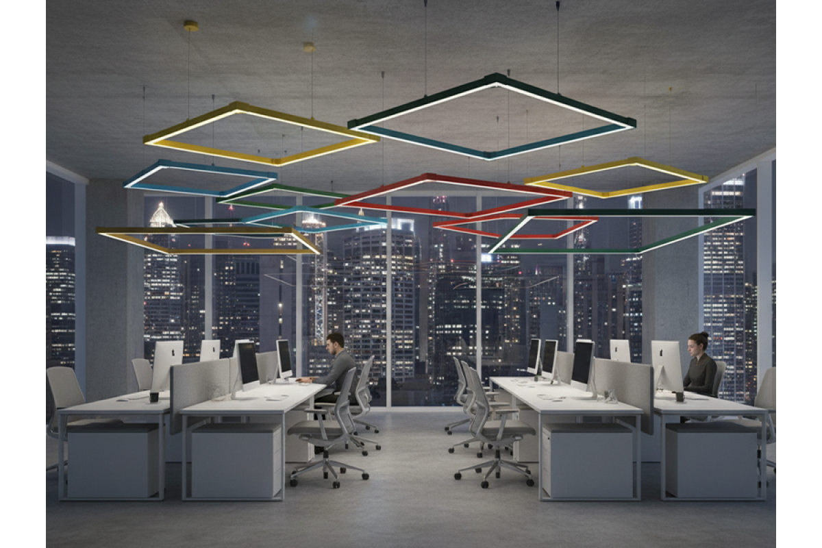 LED pendant lamp, ceiling "Quadra 2 mini" square 110-240V 64W 3500k 2000*2000 gold body LEDUA