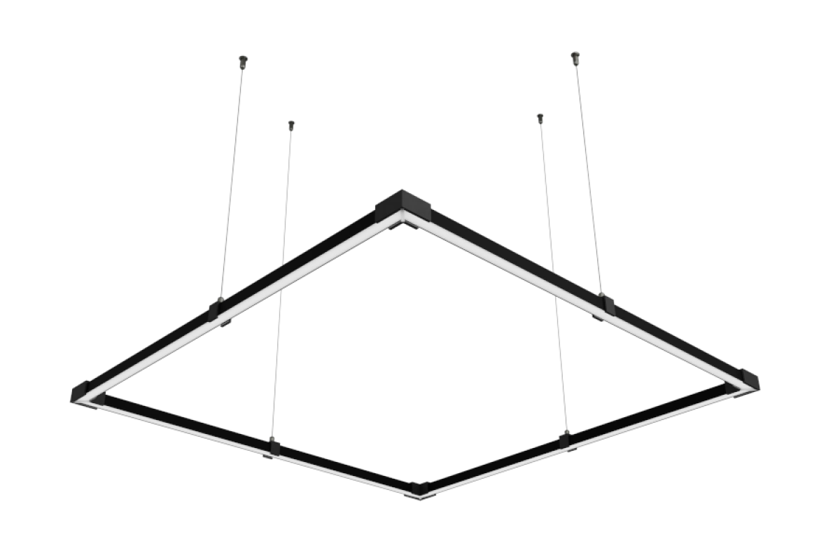 LED pendant lamp, ceiling "Quadra 2 mini" square 110-240V 64W 6500k 2000*2000 black housing LEDUA