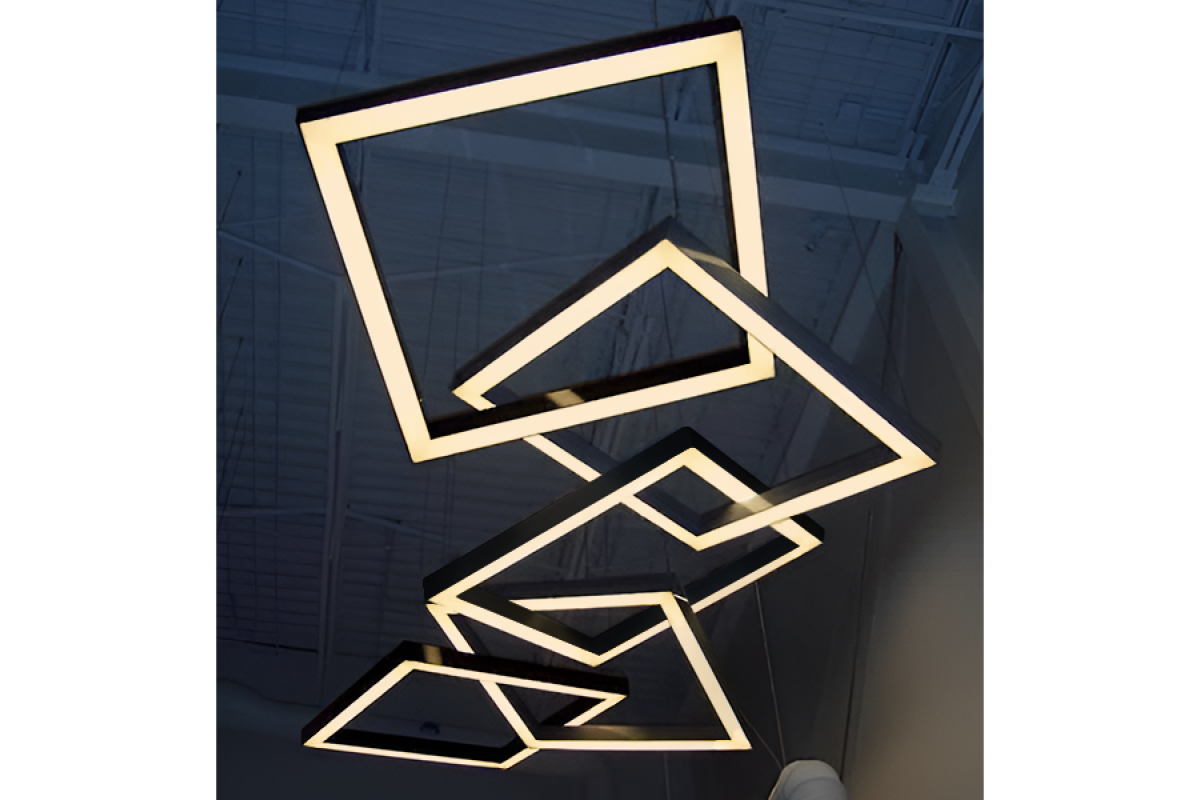 LED pendant lamp, ceiling "Quadra-chain" square 110-240V 450W 17300lm 3500k 1000*1000*5 pcs, black housing, external driver LEDUA
