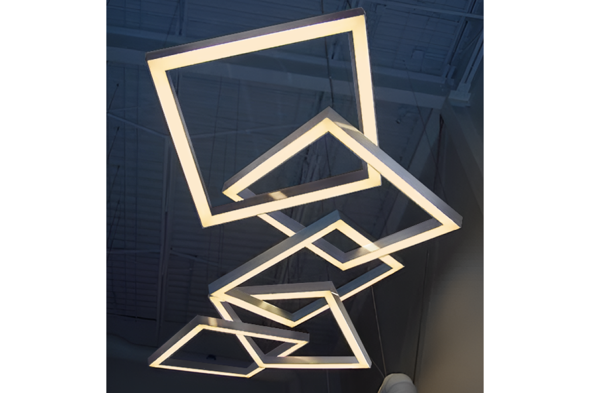 LED pendant lamp, ceiling "Quadra-chain" square 110-240V 450W 17300lm 3500k 1000*1000*5 pcs, external driver LEDUA