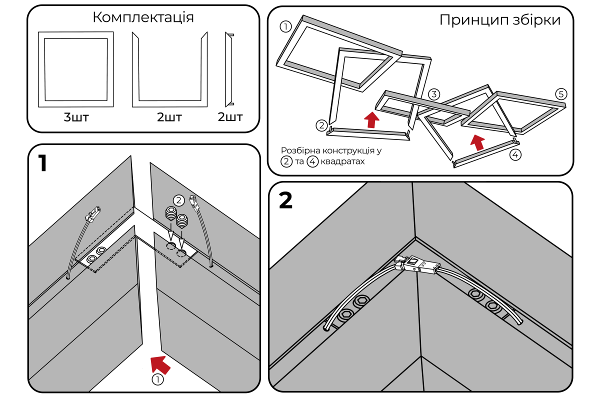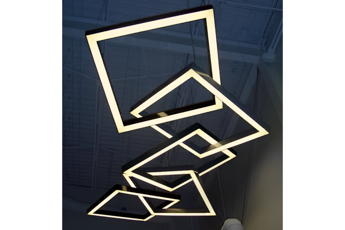 LED pendant lamp, ceiling "Quadra-chain" square 110-240V 450W 17300lm 4500k 1000*1000*5 pcs, black housing, external driver LEDUA