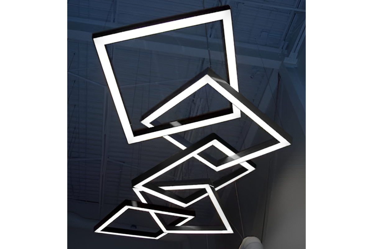 LED pendant lamp, ceiling "Quadra-chain" square 110-240V 450W 17300lm 6500k 1000*1000*5 pcs, black housing, external driver LEDUA
