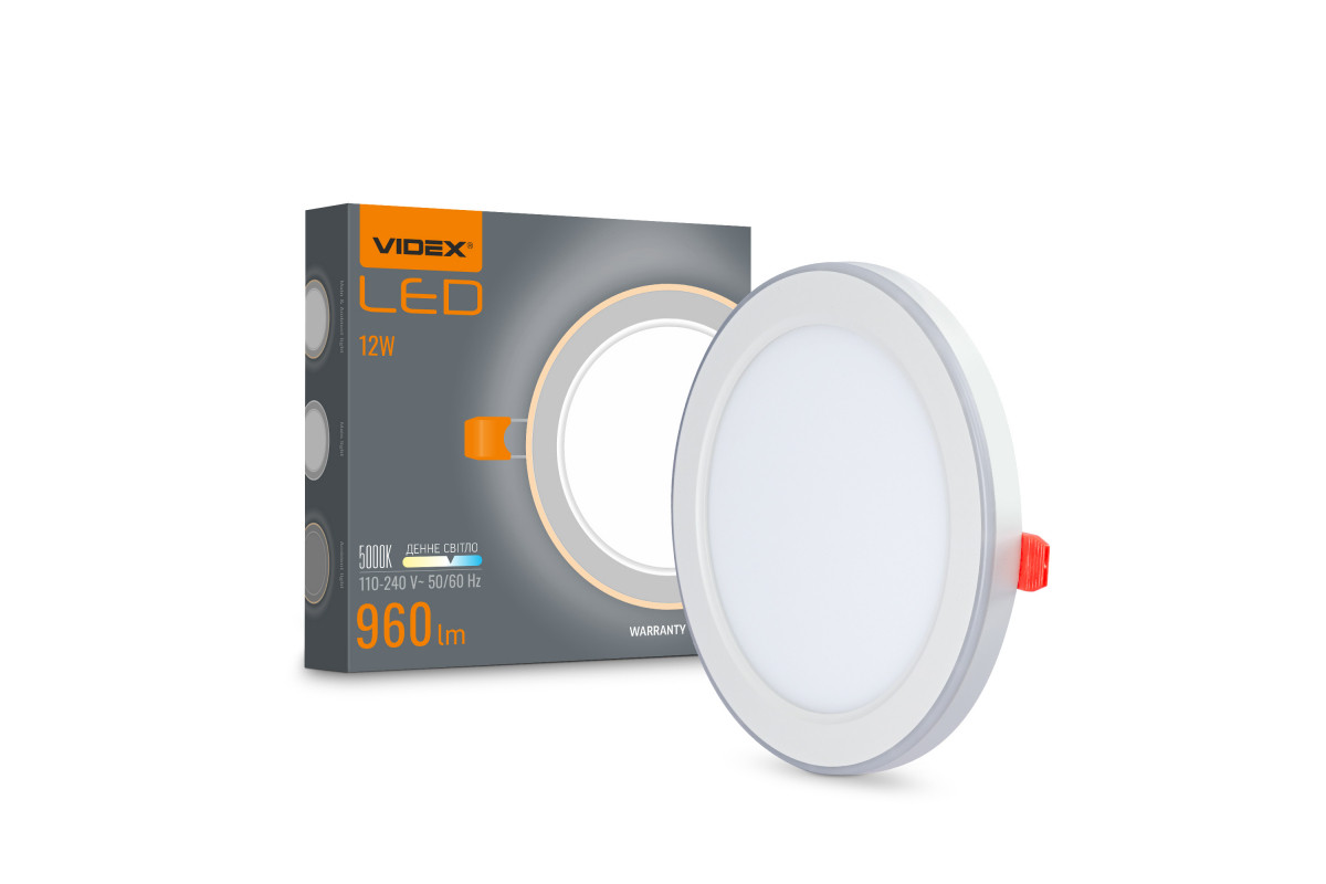 LED recessed light with decorative lighting VIDEX DL4R 12W+4W 5000K+2700K 220V