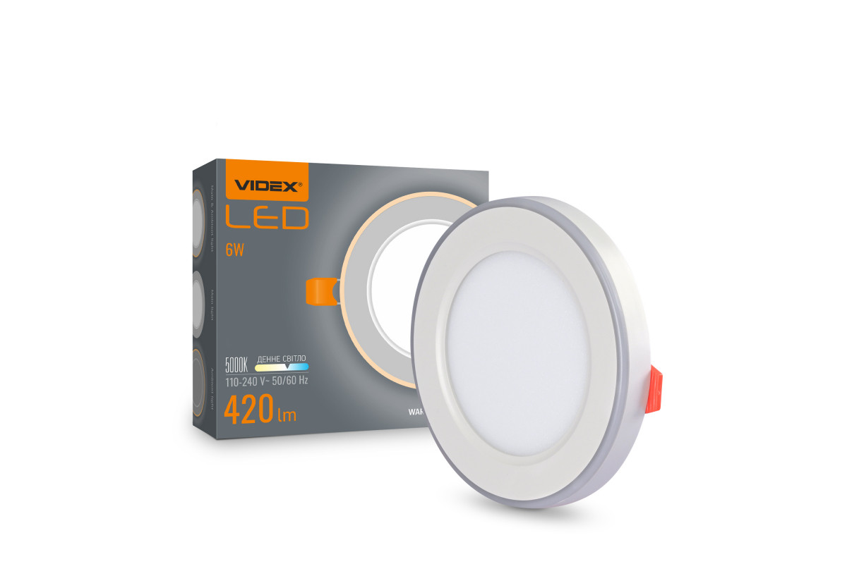 LED recessed light with decorative lighting VIDEX DL4R 6W+3W 5000K+2700K 220V