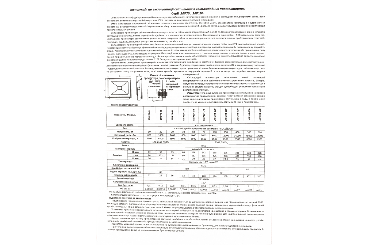 LED spotlight 400W 6500K IP65 175-265V 36000LM "Poseidon" black LMP104-400 Lemanso