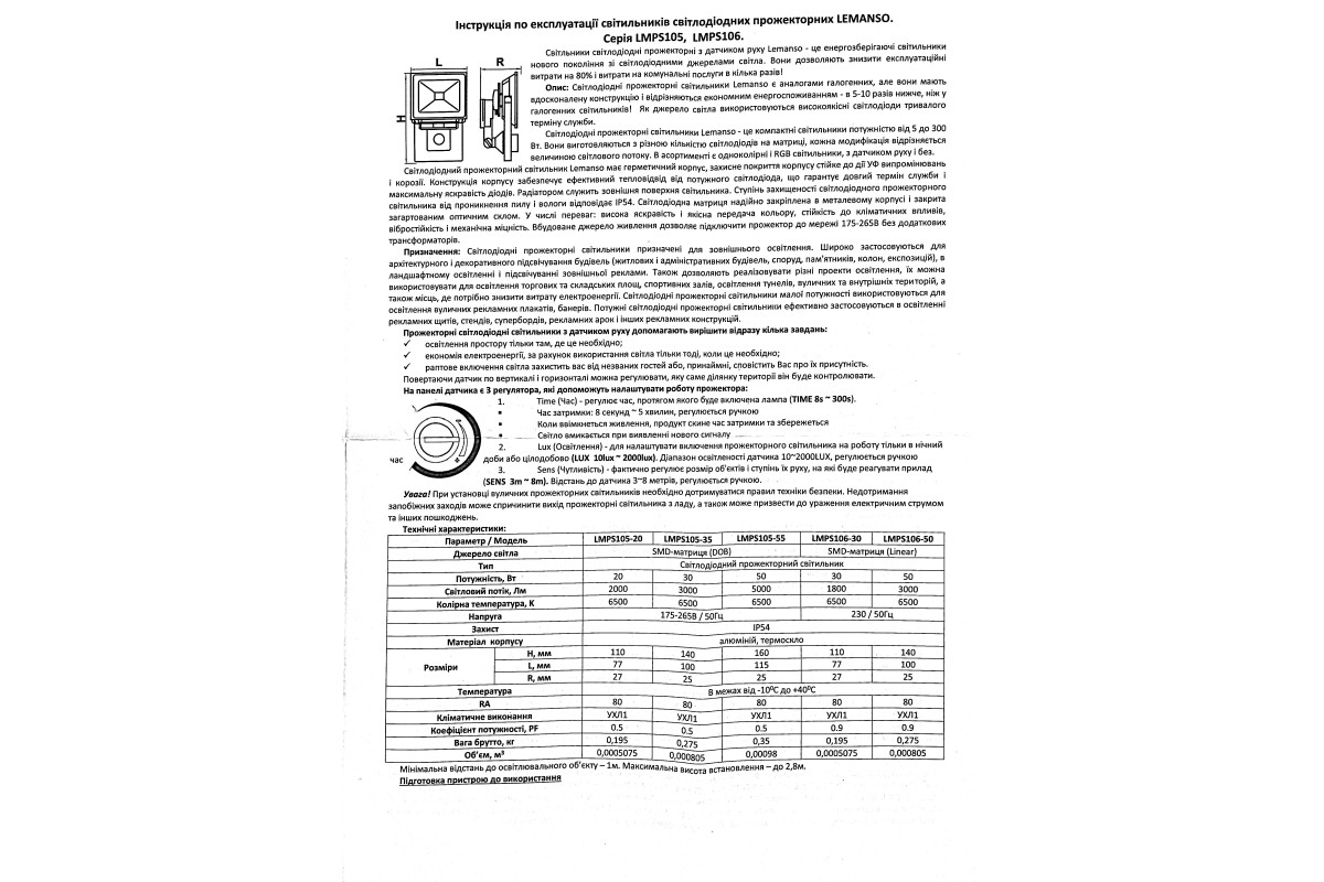 LED spotlight 50W 6500K IP54 5000LM 175-265V with sensor black LMPS105-55 "Charm" Lemanso