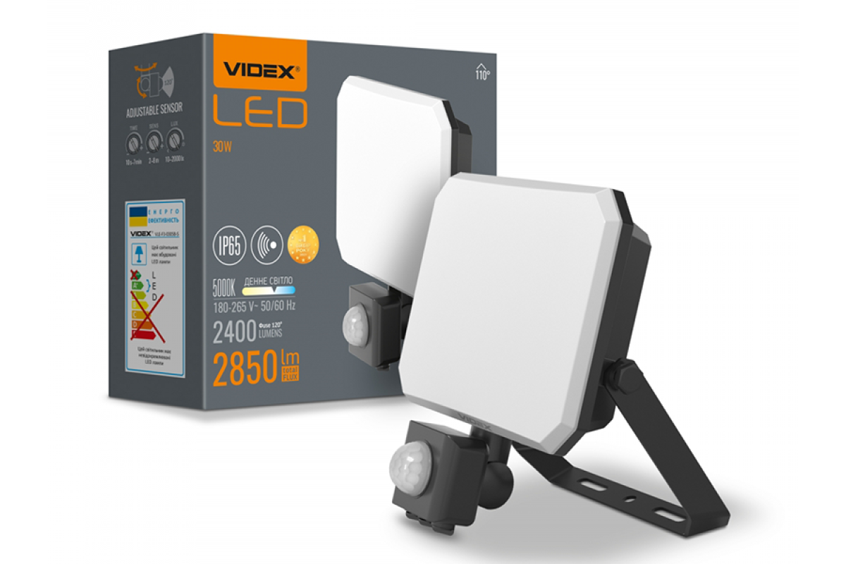 LED spotlight F3 30W 5000K with motion sensor 220V Black VLE-F3-0305B-S VIDEX