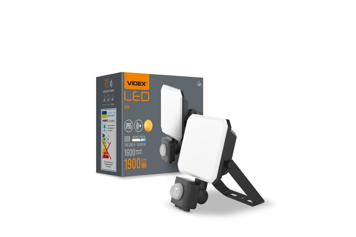 LED spotlight VIDEX F3 20W 5000K with motion sensor 220V Black (VLE-F3-0205B-S)