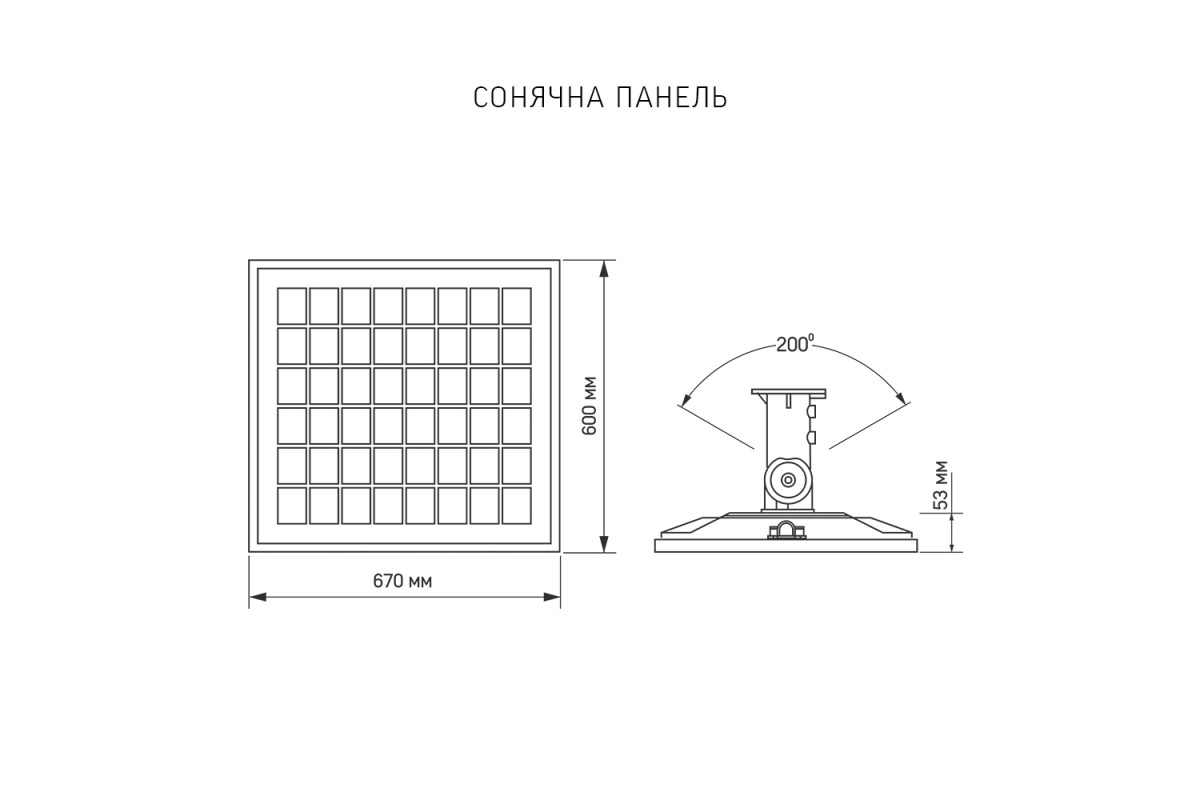 Solar panel size, mm: