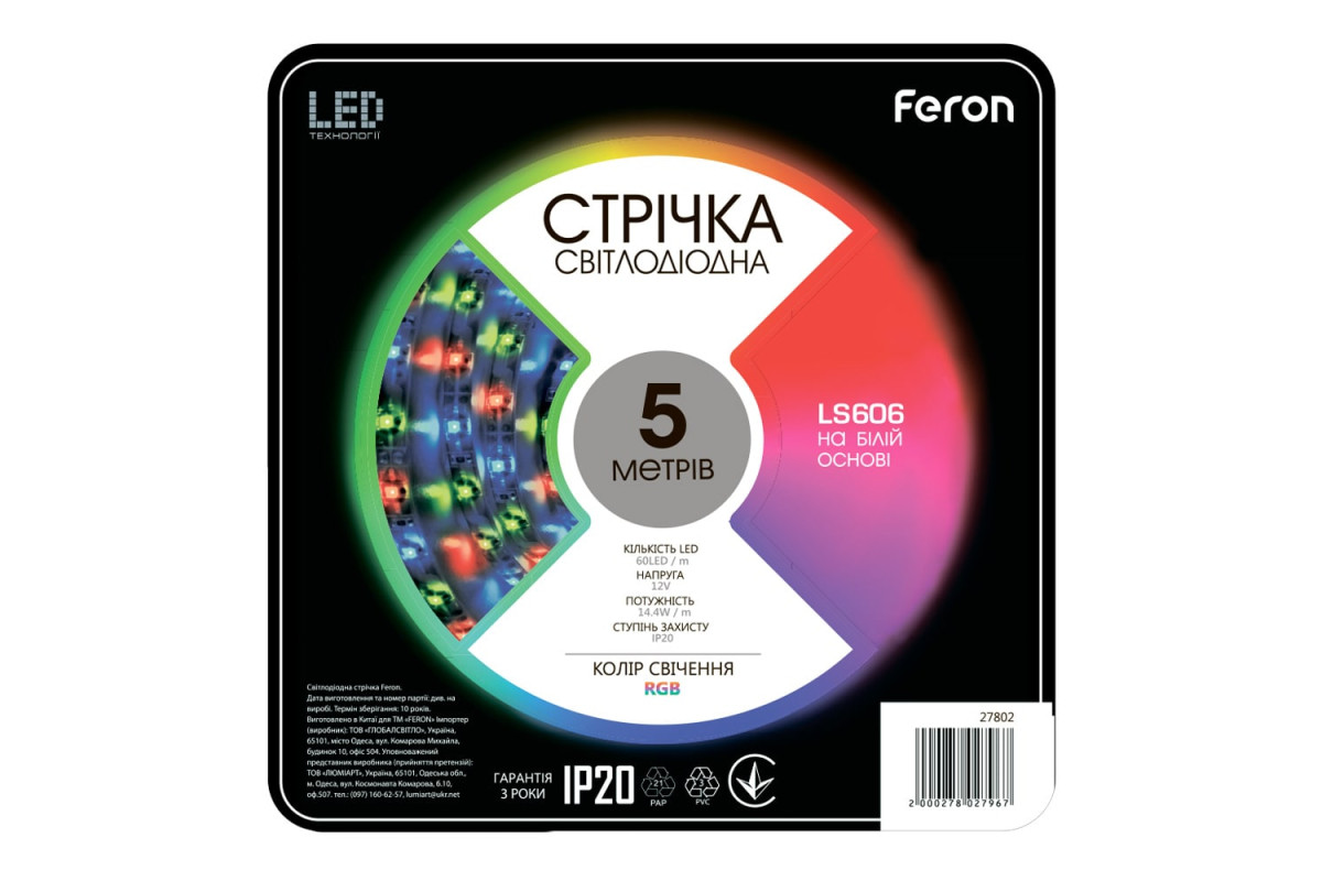 LED strip Feron LS606 12V 14.4W RGB (5 metres in a reel)