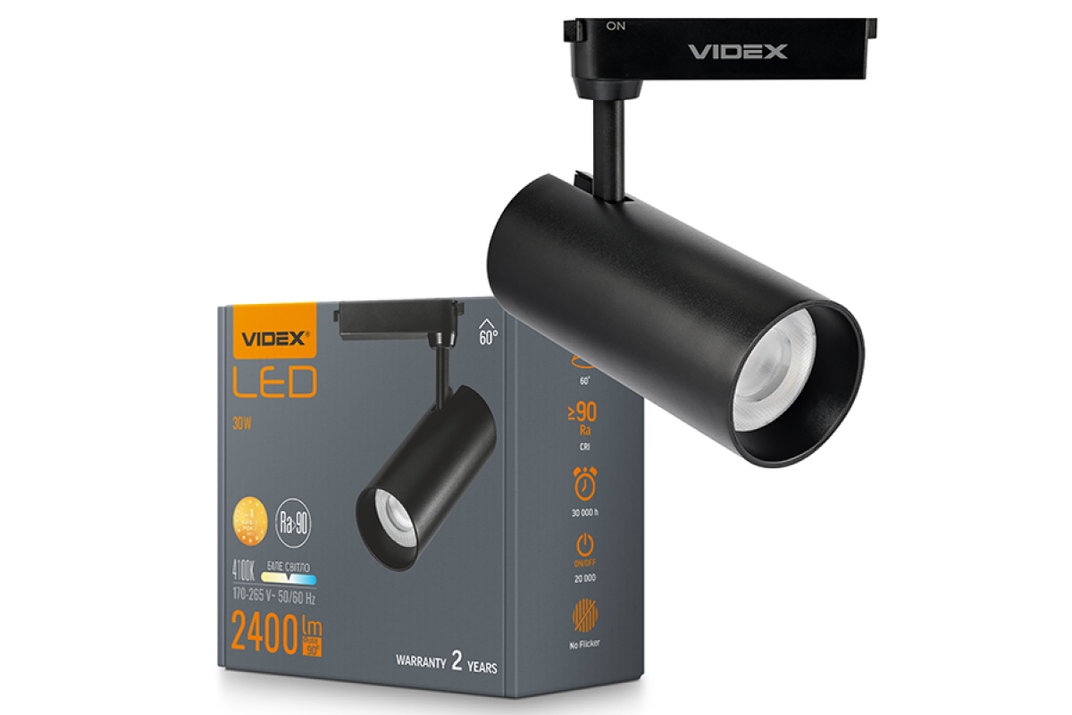 LED track light 30W 60° 4100K 220V Black (VL-TR04W-304B) VIDEX