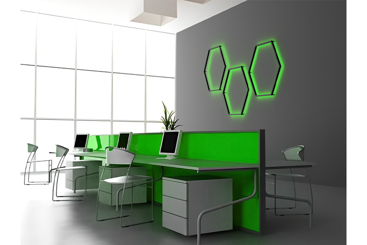 LED wall lamp "Hexagon" 220V, 6*330 black body 30W green+power supply 36W LEDUA