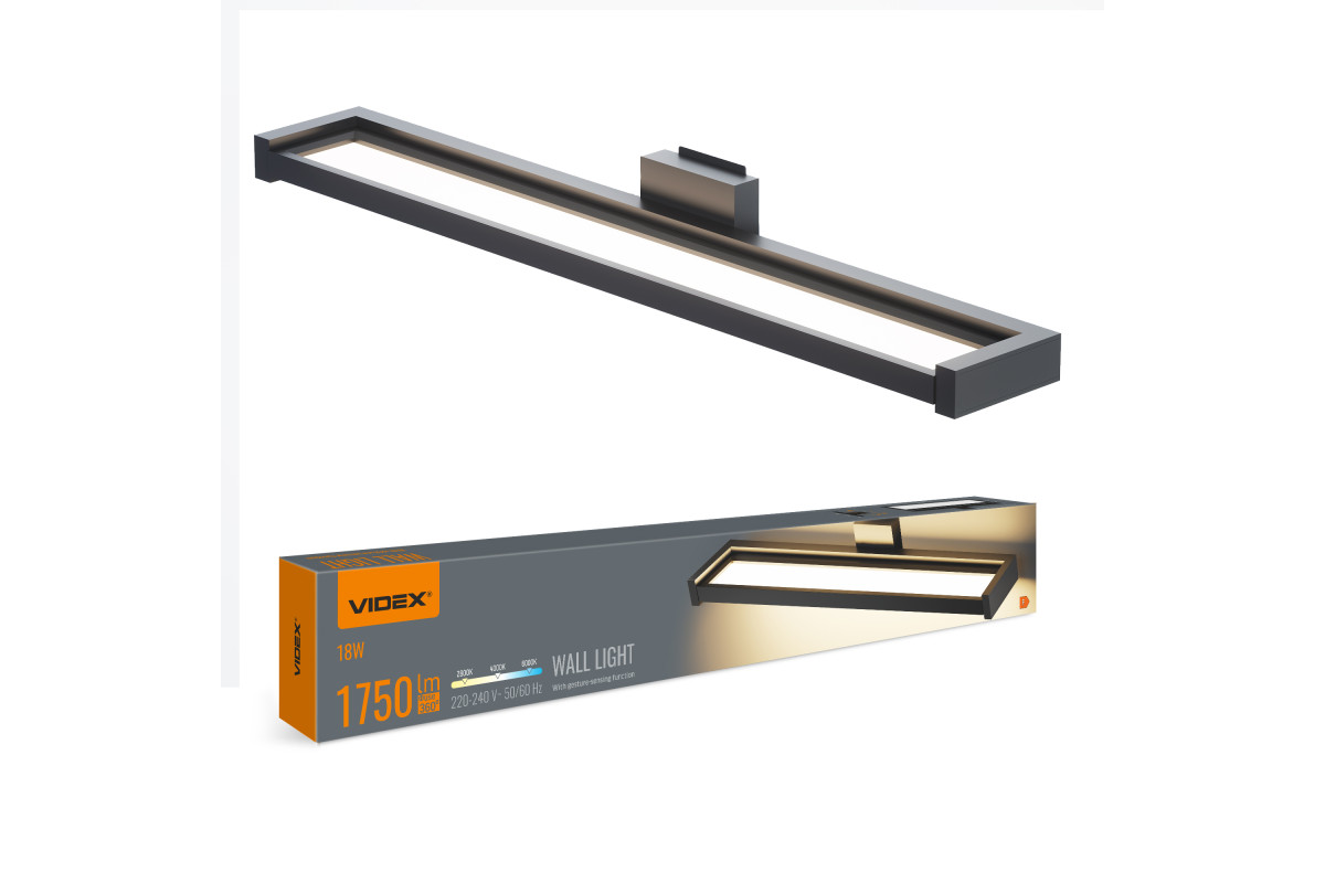 LED wall lamp with sensor VIDEX WL02 18W 2800K-4000K-6000K Black
