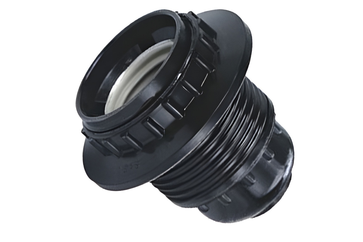 LEMANSO E27 lampholder bakelite, thread with ring black / LM2522