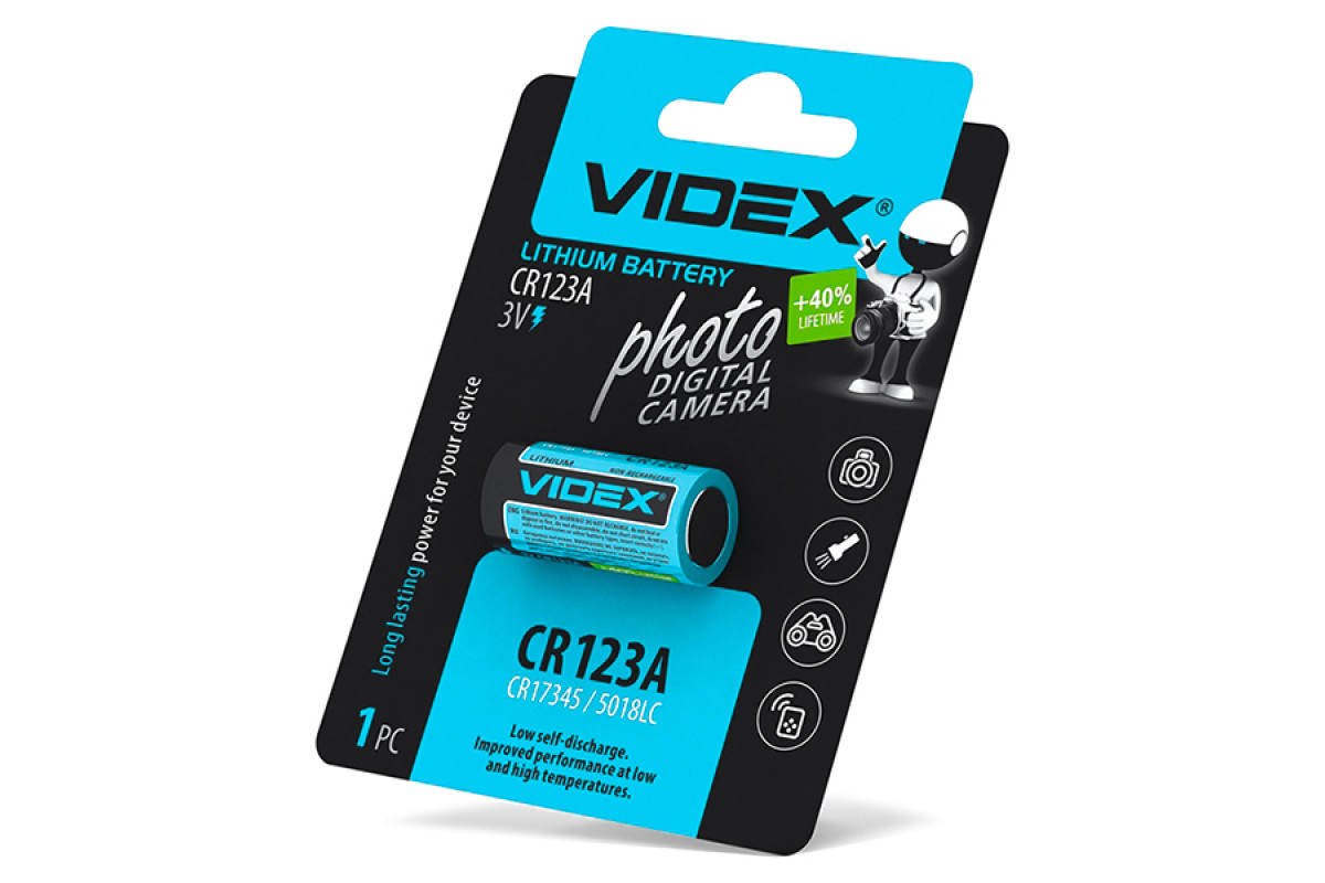 Lithium battery CR123A 1pc BLISTER CARD Videx