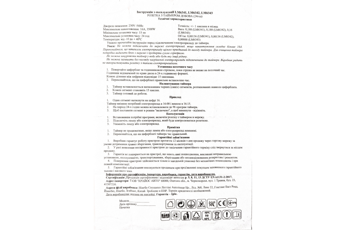 Mechanical timer LM6342 Lemanso