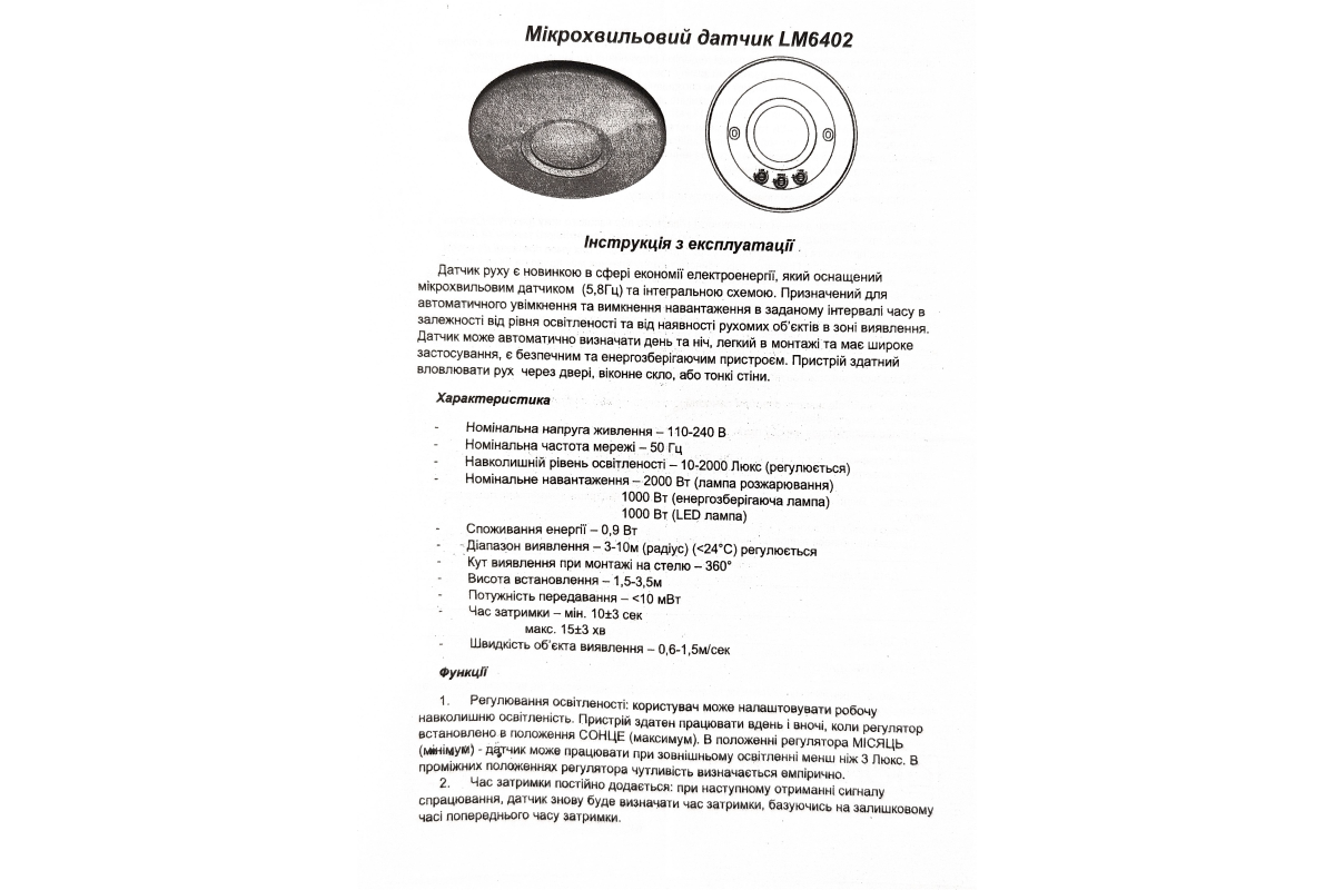 Microwave motion sensor 360° white 110-240V (2 adjustment knobs) LM6402 Lemanso