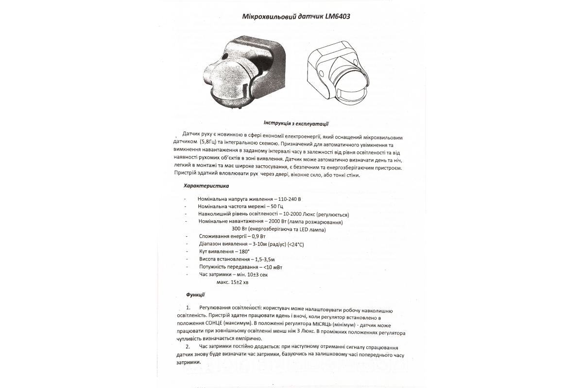 Microwave motion sensor 360° white 110-240V (2 adjustment knobs) LM6403 Lemanso