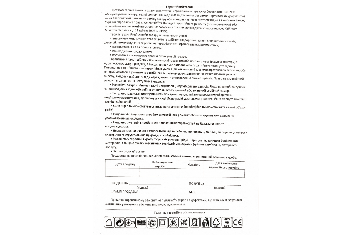 Warranty: