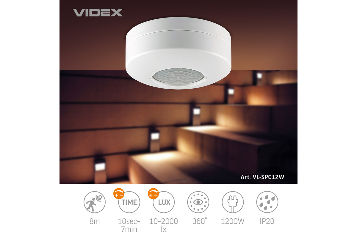 Motion and light sensor VIDEX VL-SPC12W 220V 1200W infrared