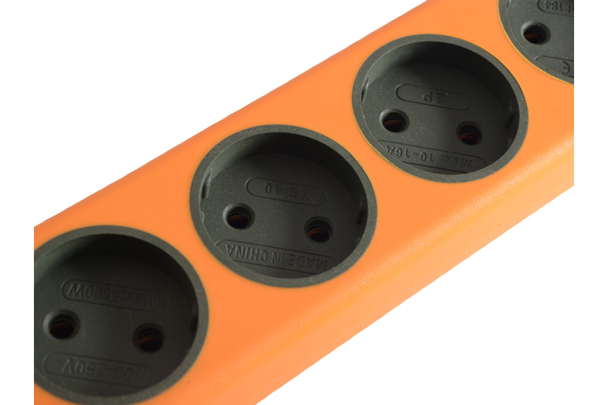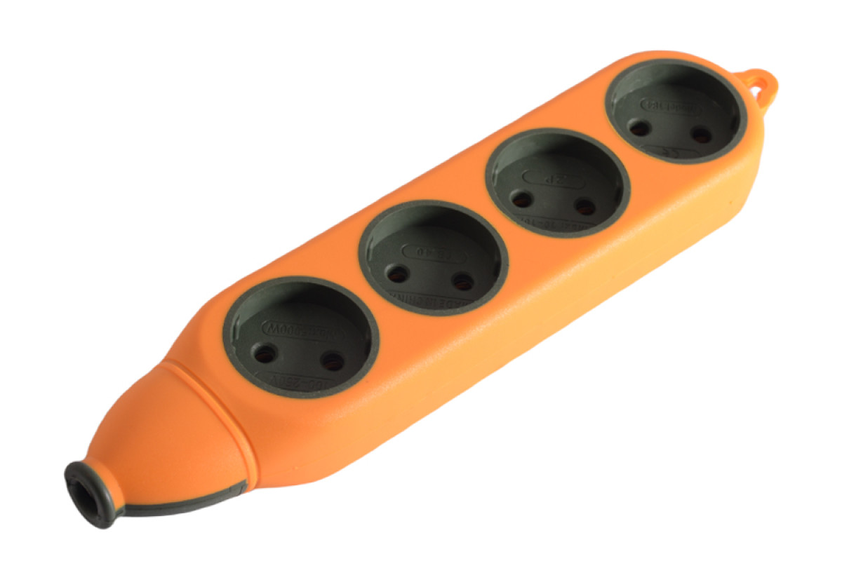 Orange block 4 sockets 10A/250V, 2.1A, without grounding. / LMK75003 Max.2500W orange Lemanso