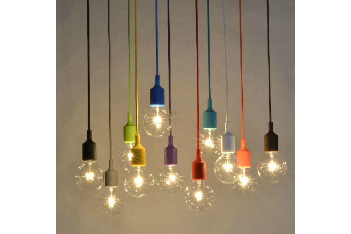 Pendant plastic T-shaped for LED lamp E27 orange 1m LMA074 Lemanso
